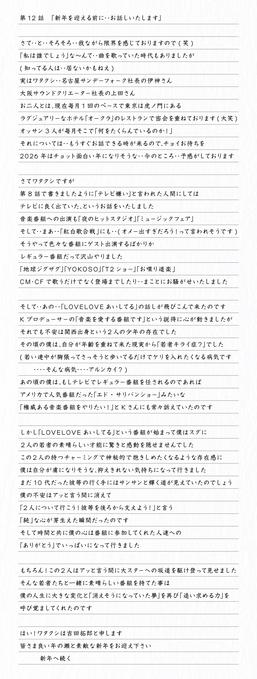 「吉田拓郎スペシャル連載エッセイ」第12話