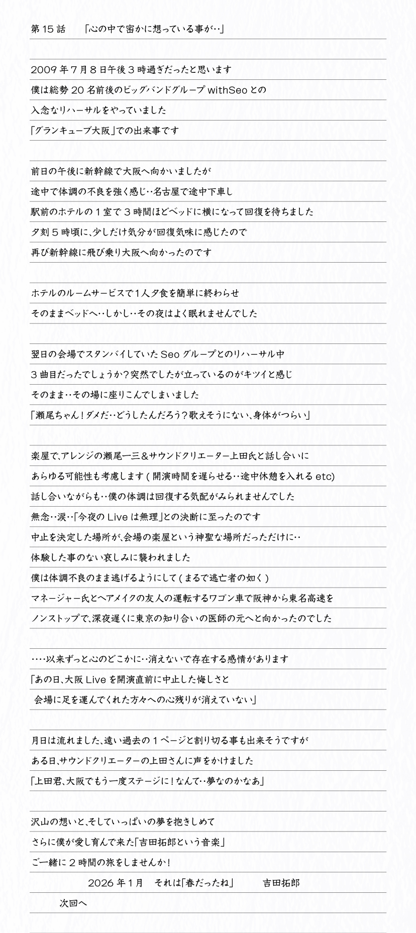 「吉田拓郎スペシャル連載エッセイ」第15話