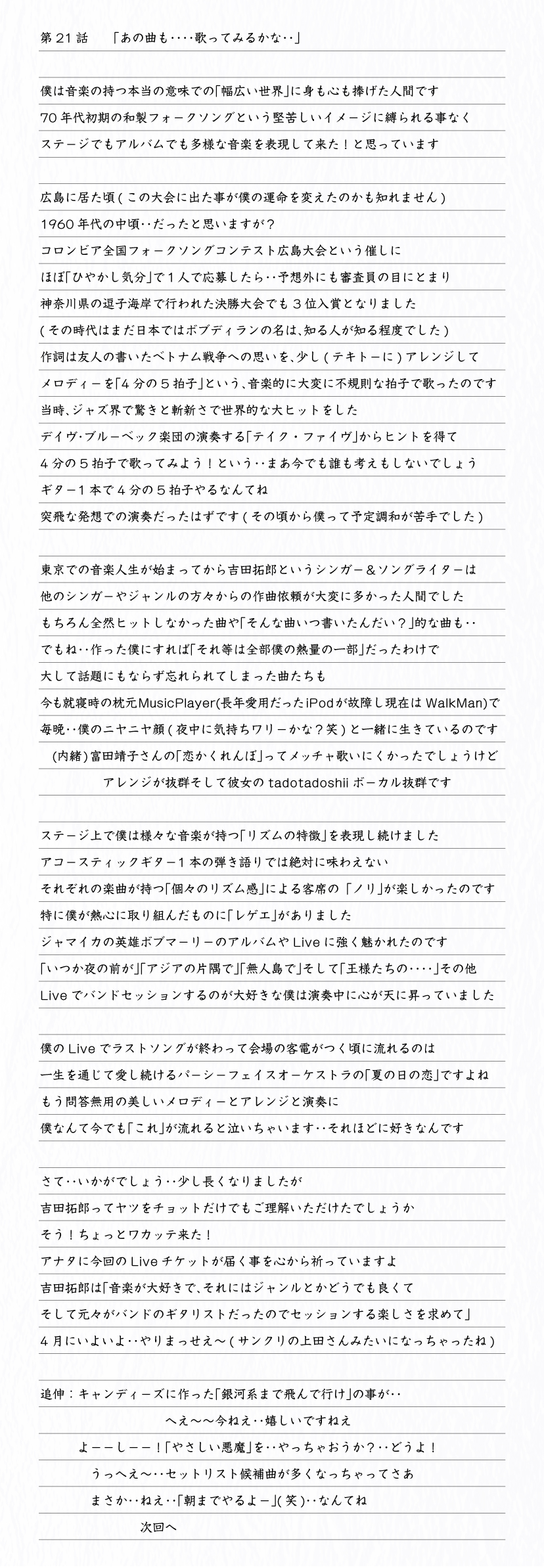 「吉田拓郎スペシャル連載エッセイ」第21話