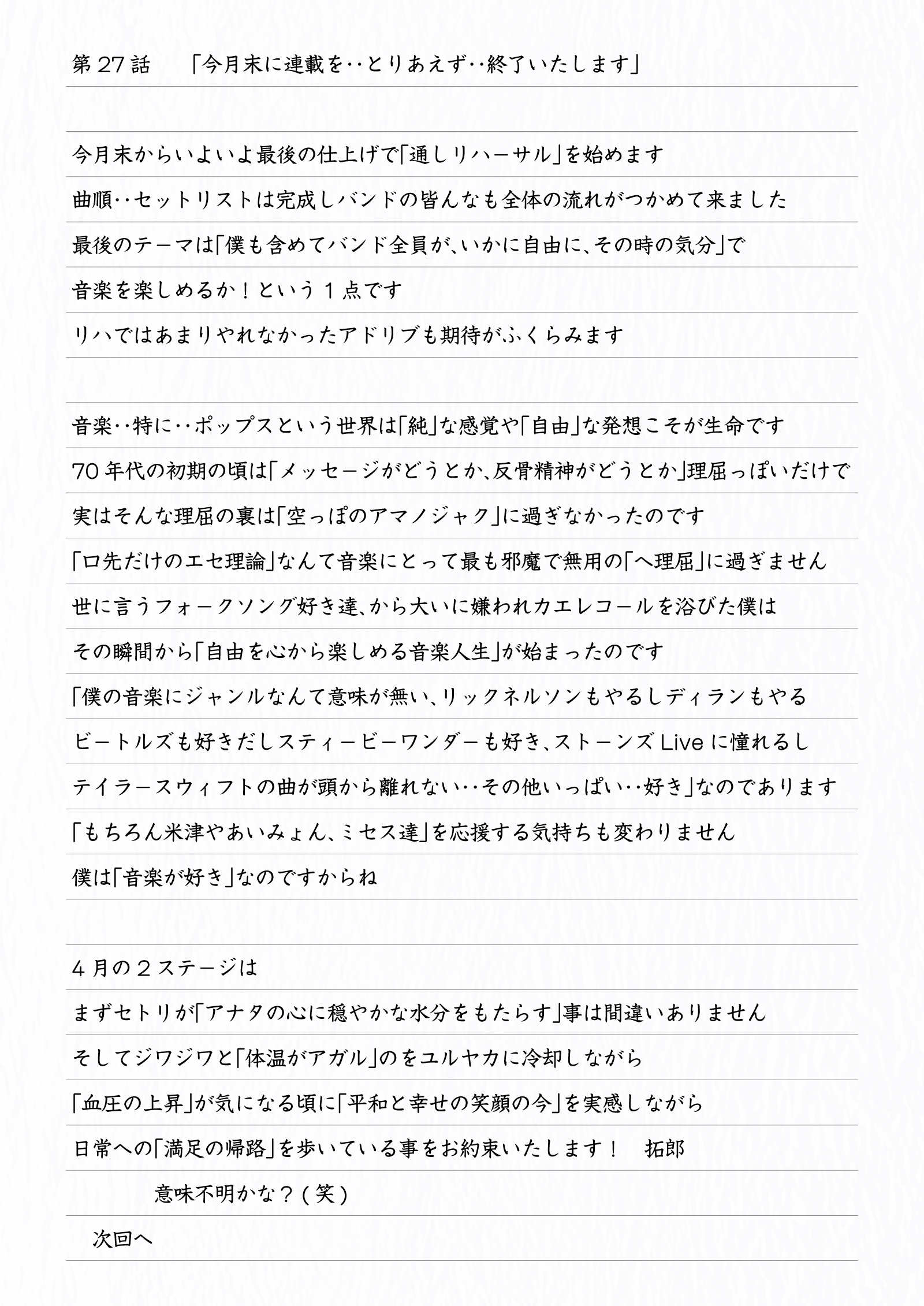 吉田拓郎スペシャル連載エッセイ」第27話