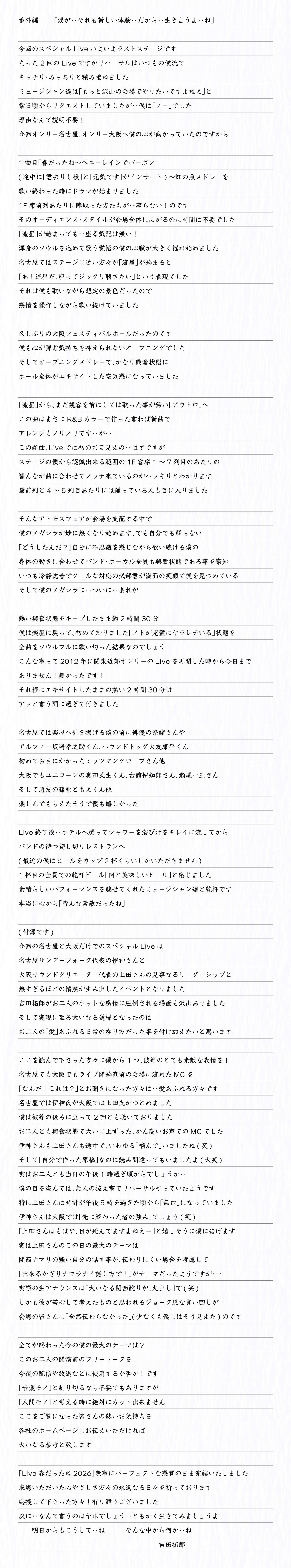 「吉田拓郎スペシャル連載エッセイ」番外編