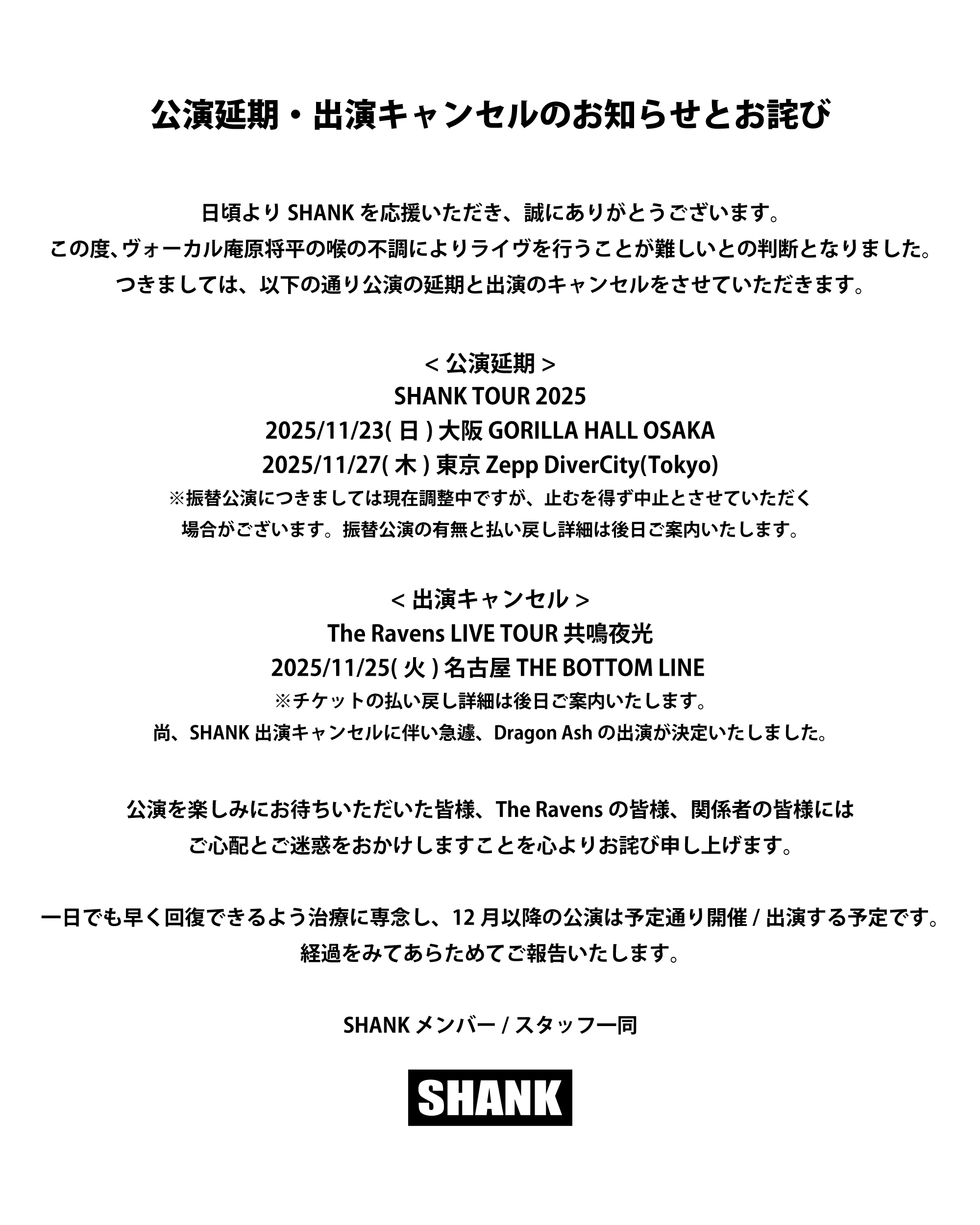 » 公演延期・出演キャンセルのお知らせとお詫び [2025/11/22]